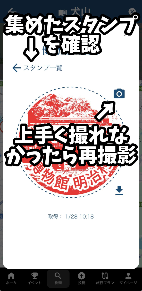 各スポットで撮影した写真からあなただけのオリジナルのスタンプが生成されます。