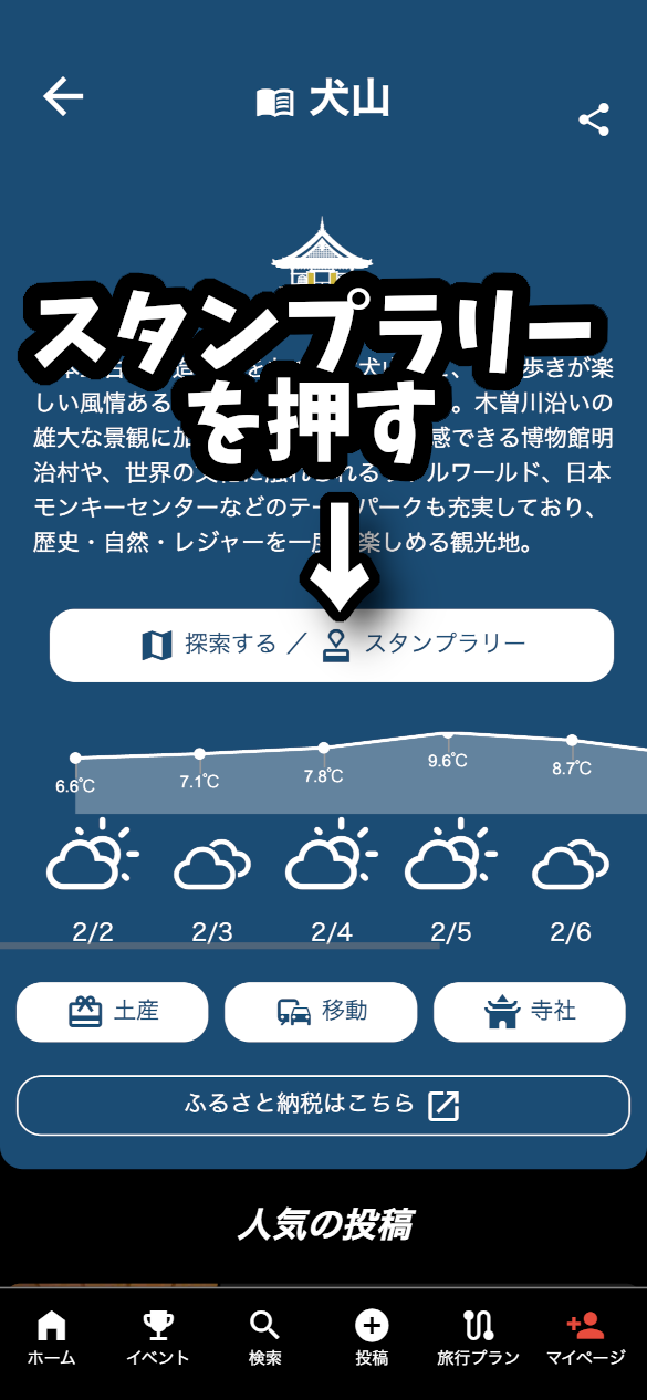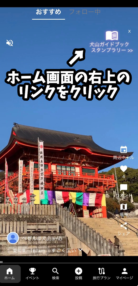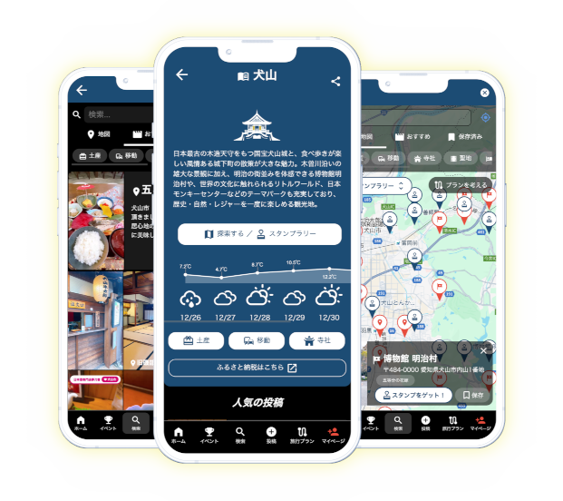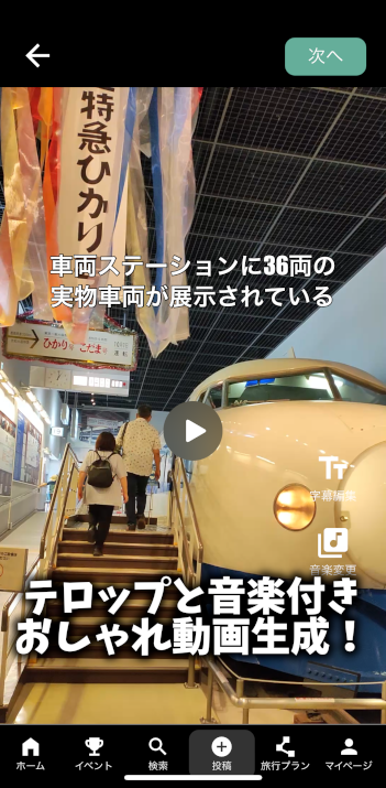 犬山市内のおすすめしたいスポット(観光地や飲食店)を選んで撮影して投稿。「自動編集AI」を使えば数十秒で投稿可能!