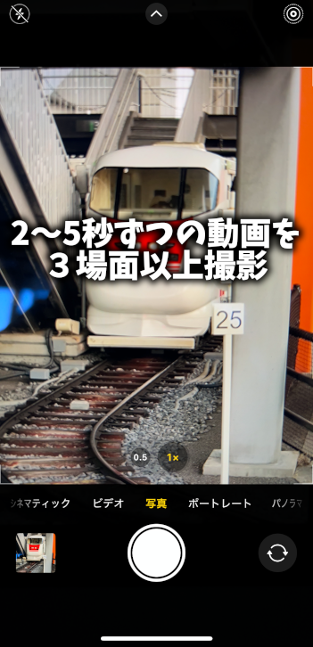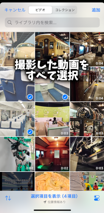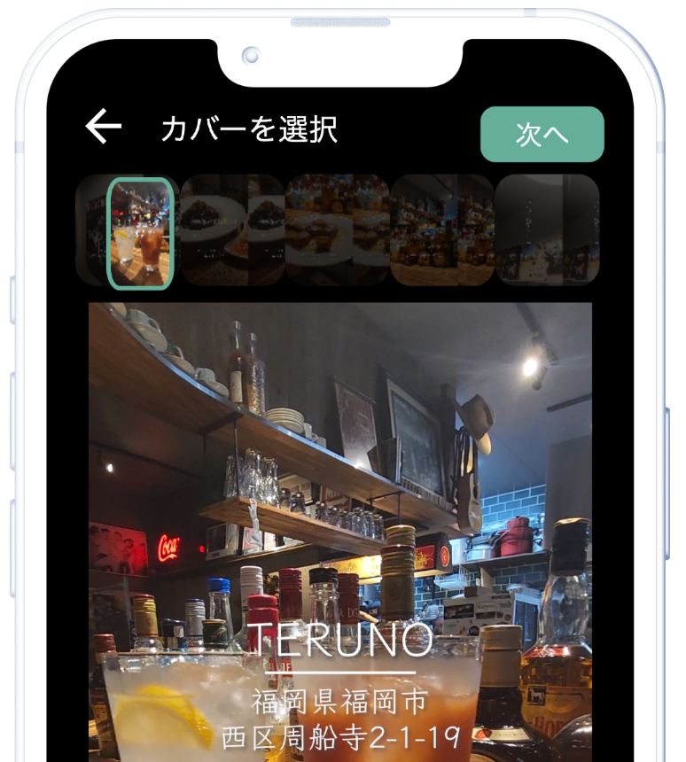 撮影した複数の動画をアップロードし、撮影場所を指定するだけで、テロップ付きの動画を数秒で生成。